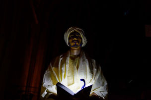 The reader is so involved with his readings that he doesn’t notice a dancer approaching him, whispering her words repeatedly, as if being in a trance and getting his attention failed completely.
